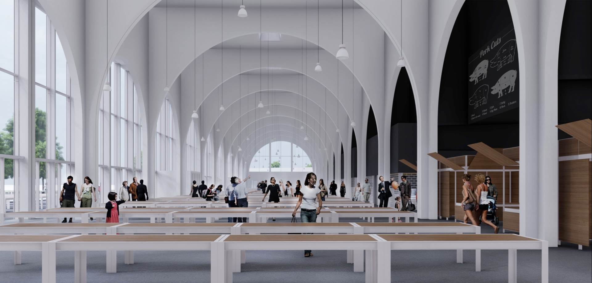 Az újonnan épült pécsi vásárcsarnok több szempontból is kiemelkedő Magyarországon: Az épület könnyed építészeti stílusa és hatalmas árkádjai mindenkit elvarázsolnak. A látványos épület 1750 m2 alapterületű. Erre merőlegesen két külső és tizenkét belső, még nagyobb árkádsor, 13,60 méteres szabad fesztávolsággal, nagy térérzetet keltve. A 13,60 m és 8,10 m széles félköríves acélrácsos konzolok külön-külön valósultak meg.